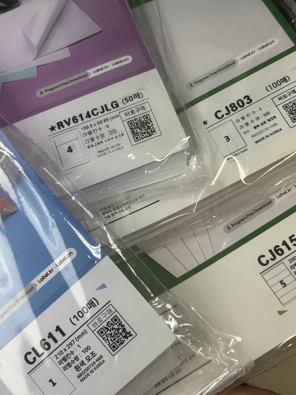 A4, A3등 시트 형태의 제품 대부분은 한 장도 구매가 가능하도록 했습니다. 실제로 소량만 필요하신 고객, 구매 전 몇 장만 샘플로 사용해 보시려는 고객분들께 도움을 드리려는 아이라벨만의 결단입니다.