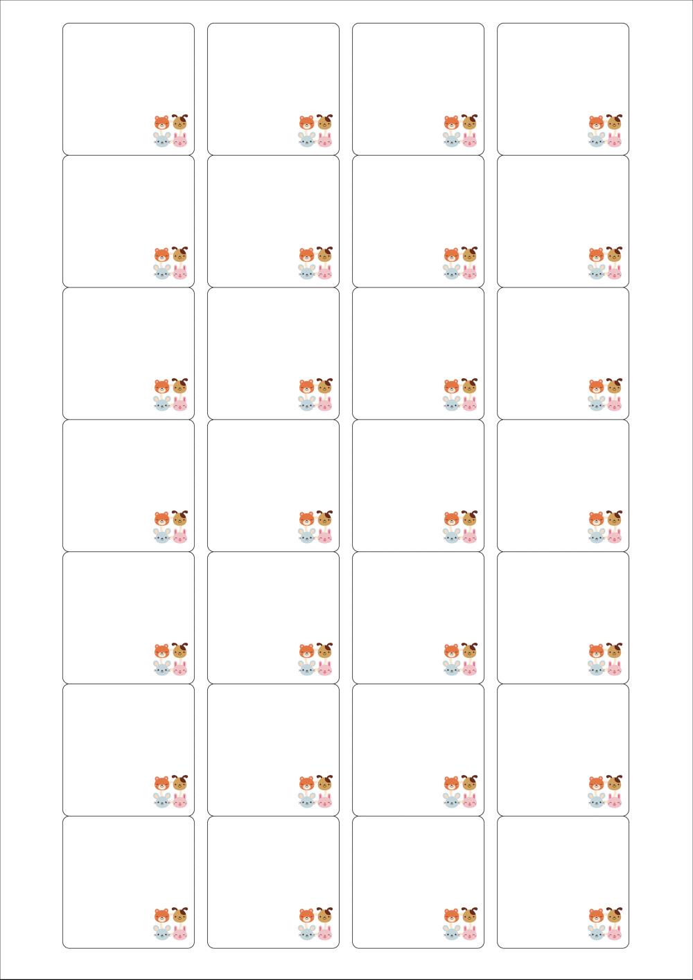디자인된 A4 라벨지 출력용 라벨스티커, 규격코드: 247, 디자인코드: DV081(딩동딩동), 39.9 x 40.08 (mm)