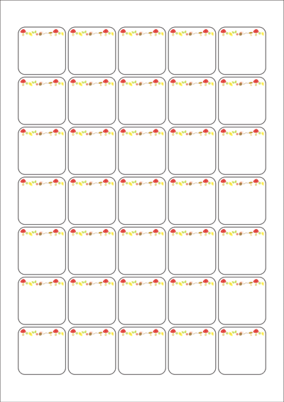 디자인된 A4 라벨지 출력용 라벨스티커, 규격코드: 257, 디자인코드: DN092(버섯, 풀잎, 도토리, 가을), 35 x 35 (mm)