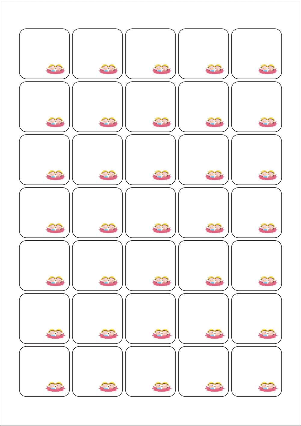 디자인된 A4 라벨지 출력용 라벨스티커, 규격코드: 257, 디자인코드: DV035(하이 방가방가), 35 x 35 (mm)