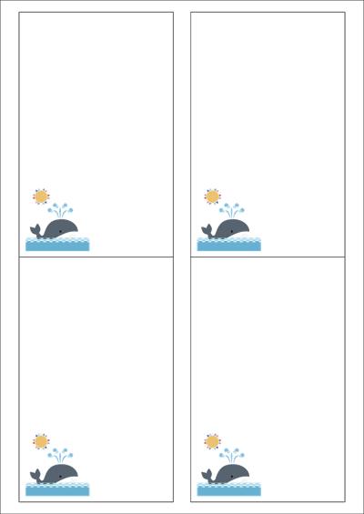 디자인된 A4 라벨지 출력용 라벨스티커, 규격코드: 422, 디자인코드: DX172(고래의 하루), 89 x 141.5 (mm)
