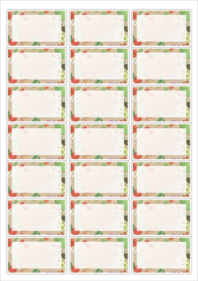 디자인된 A4 라벨지 출력용 라벨스티커, 규격코드: 437, 디자인코드: DA238(요리교실 공지사항), 63.8 x 39.97 (mm)