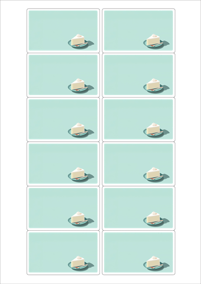 디자인된 A4 라벨지 출력용 라벨스티커, 규격코드: 526F, 디자인코드: DA1386(오묘한 민트의 즐거움), 76.2 x 46.4 (mm)