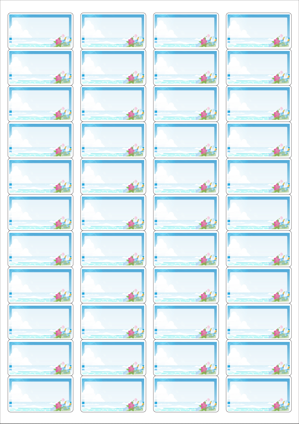 디자인된 A4 라벨지 출력용 라벨스티커, 규격코드: 544, 디자인코드: DA300(한여름 파도소리와 빙수), 45.9 x 25.5 (mm)