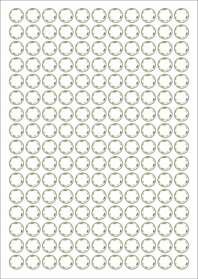디자인된 A4 라벨지 출력용 라벨스티커, 규격코드: 915, 디자인코드: DA082(건강해지는 야채 컬렉션), Φ15 (mm) 원형