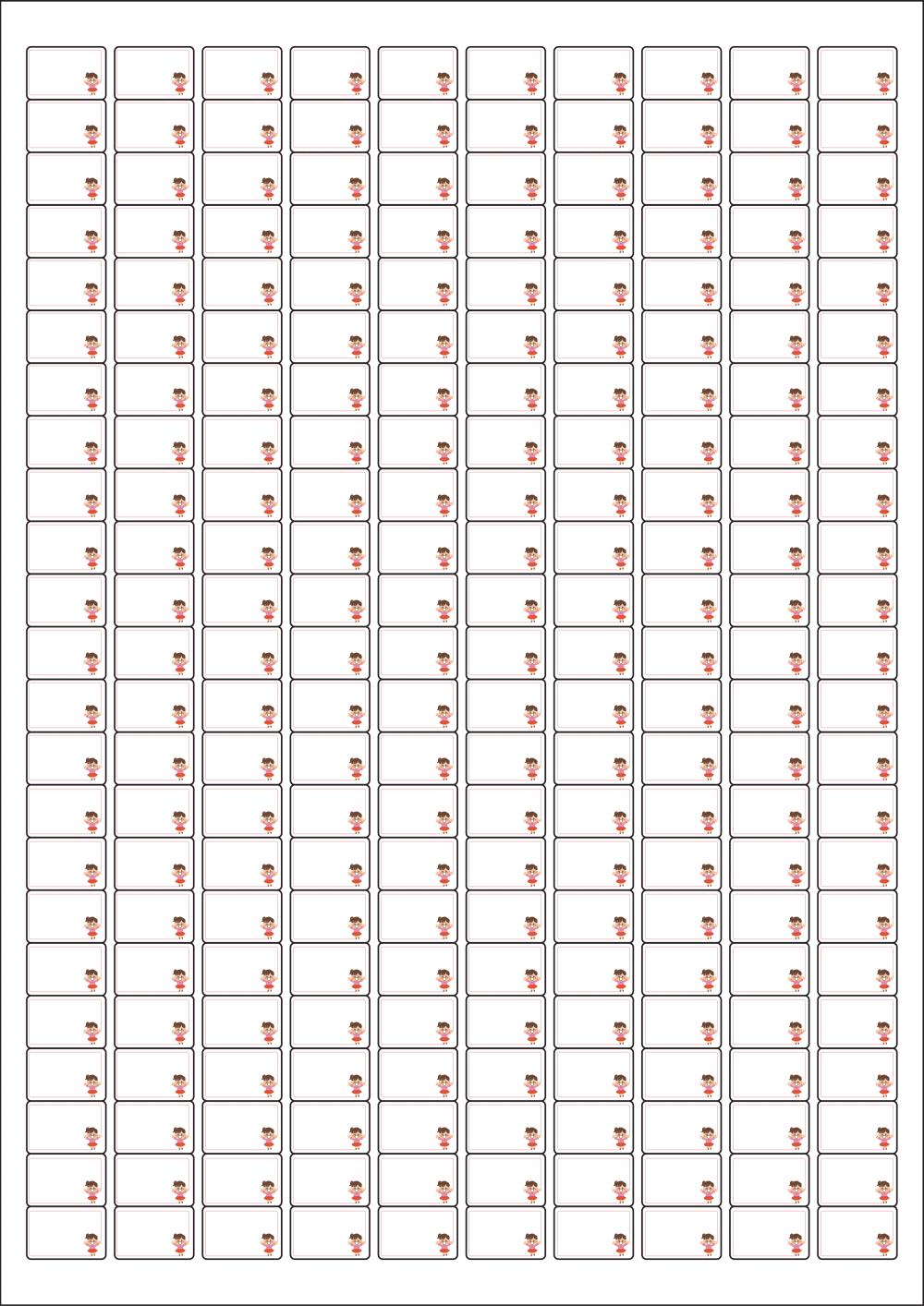 디자인된 A4 라벨지 출력용 라벨스티커, 규격코드: 923, 디자인코드: DA1074(안녕하세요~~), 18 x 12 (mm)