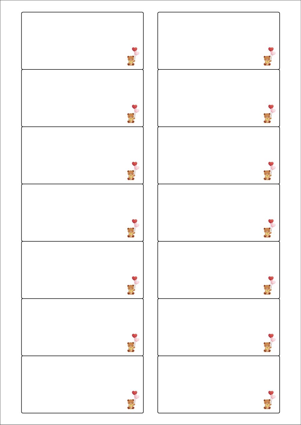 디자인된 A4 라벨지 출력용 라벨스티커, 규격코드: 927, 디자인코드: DV028(사랑의 전령 곰), 85 x 40 (mm)