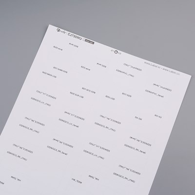 텍스트, 이미지, 도형, 바코드 등을 쉽게 출력 할 수 있으며 엑셀파일 등의 연동도 가능합니다. 라벨 모양대로 이미 칼선이 있기 때문에 출력 후 바로 떼어서 사용 하시면 됩니다.