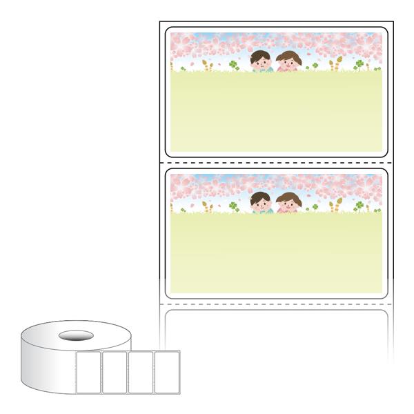 출력용 롤타입 스티커 디자인 라벨지, 규격코드: RS6035, 디자인코드: DA736(벚꽃 언덕에 아이들), 60 x 35.1 (mm) , 지관: 40mm