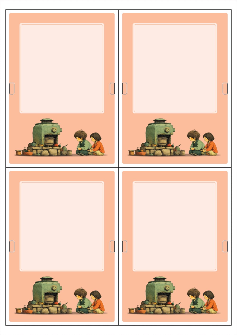 디자인된 A4 택 출력용 비점착 라벨, 규격코드: TLH0042, 디자인코드: DA1438(동화 - 따뜻한 이야기), 100 x 140 (mm)