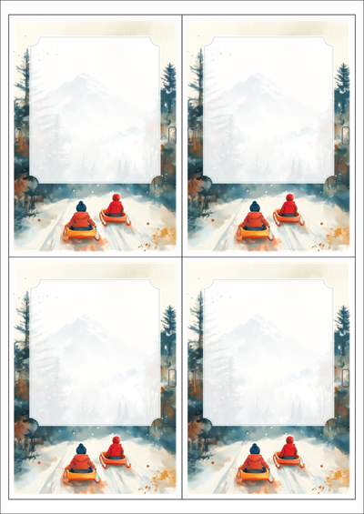 디자인된 A4 택 출력용 비점착 라벨, 규격코드: TLH0042, 디자인코드: DA1495(겨울날의 동화, 그리고 즐거운 추억), 100 x 140 (mm)