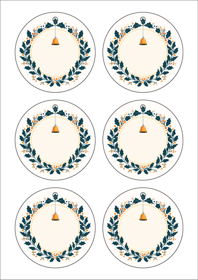 디자인된 A4 택 출력용 비점착 라벨, 규격코드: TLH0062, 디자인코드: DA1485(어서와요 크리스마스 파티에), 85 x 85 (mm)