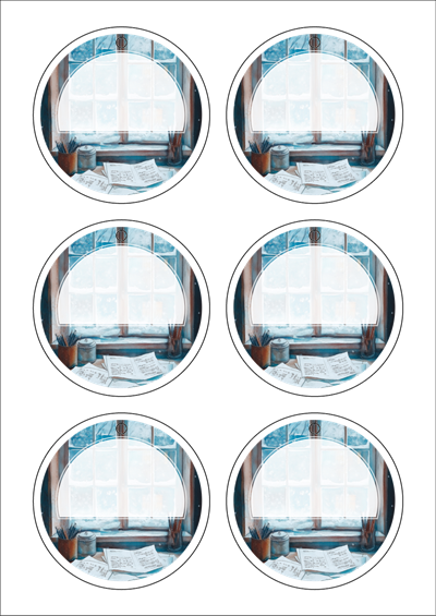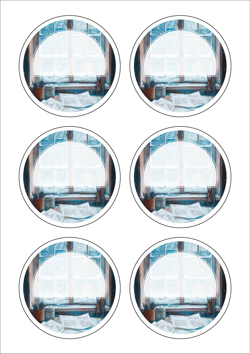 디자인된 A4 택 출력용 비점착 라벨, 규격코드: TLH0062, 디자인코드: DA1499(겨울, 작가의 책상에서), 85 x 85 (mm)