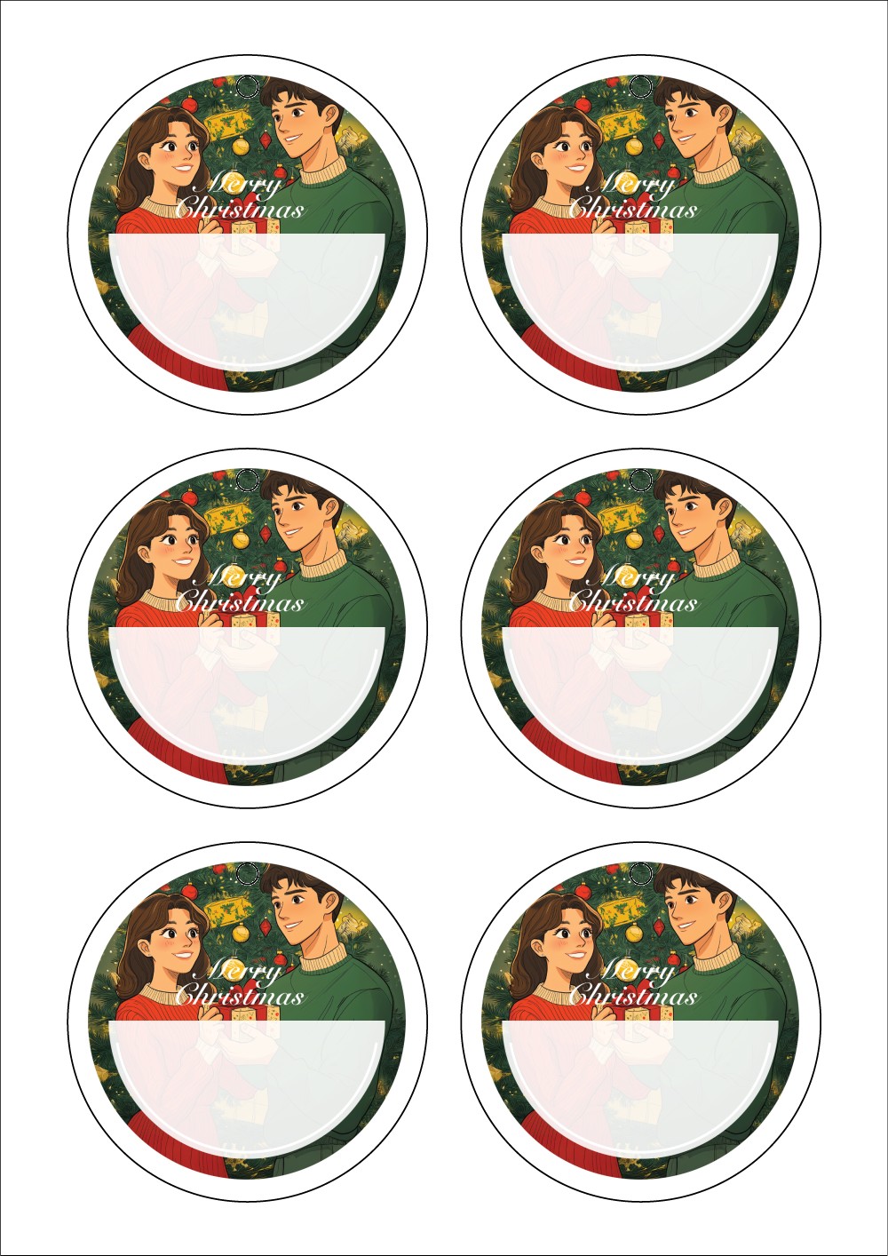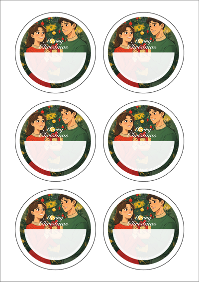 디자인된 A4 택 출력용 비점착 라벨, 규격코드: TLH0062, 디자인코드: DA1502(두근두근 선물교환 타임), 85 x 85 (mm)