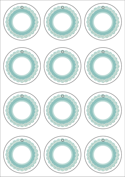 디자인된 A4 택 출력용 비점착 라벨, 규격코드: TLH0121, 디자인코드: DA1419(민트레이스), Φ62 (mm)