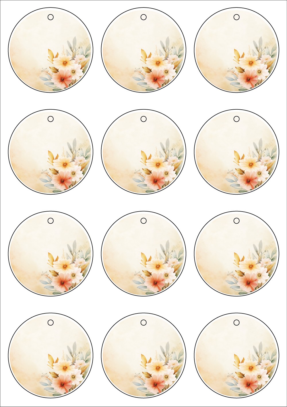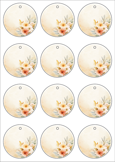 디자인된 A4 택 출력용 비점착 라벨, 규격코드: TLH0121, 디자인코드: DA1423(답례품 메세지), Φ62 (mm)