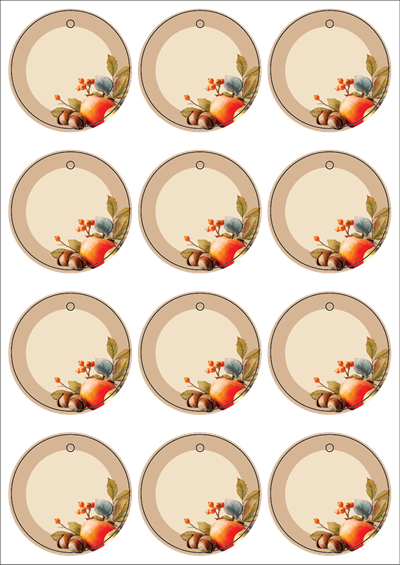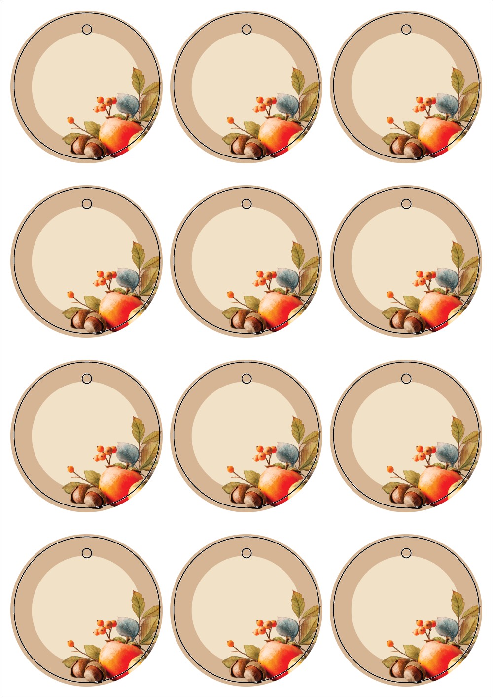 디자인된 A4 택 출력용 비점착 라벨, 규격코드: TLH0121, 디자인코드: DA1452(수확의 계절, 감사의 마음을 담아서), Φ62 (mm)