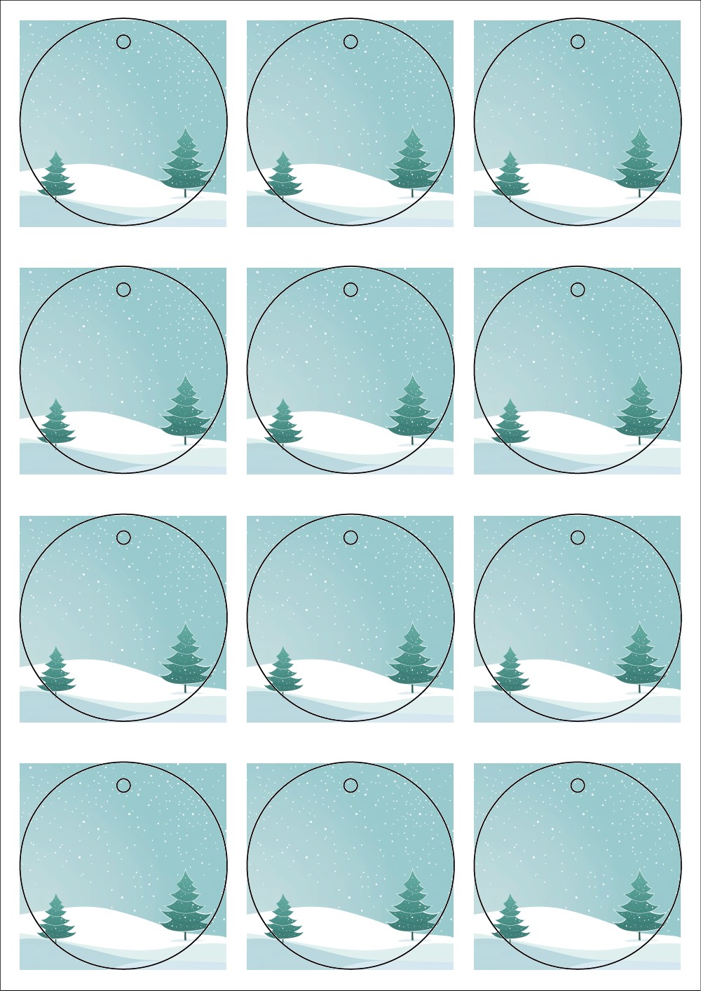 디자인된 A4 택 출력용 비점착 라벨, 규격코드: TLH0121, 디자인코드: DA1500(메리크리스마스 미스터 심플), Φ62 (mm)