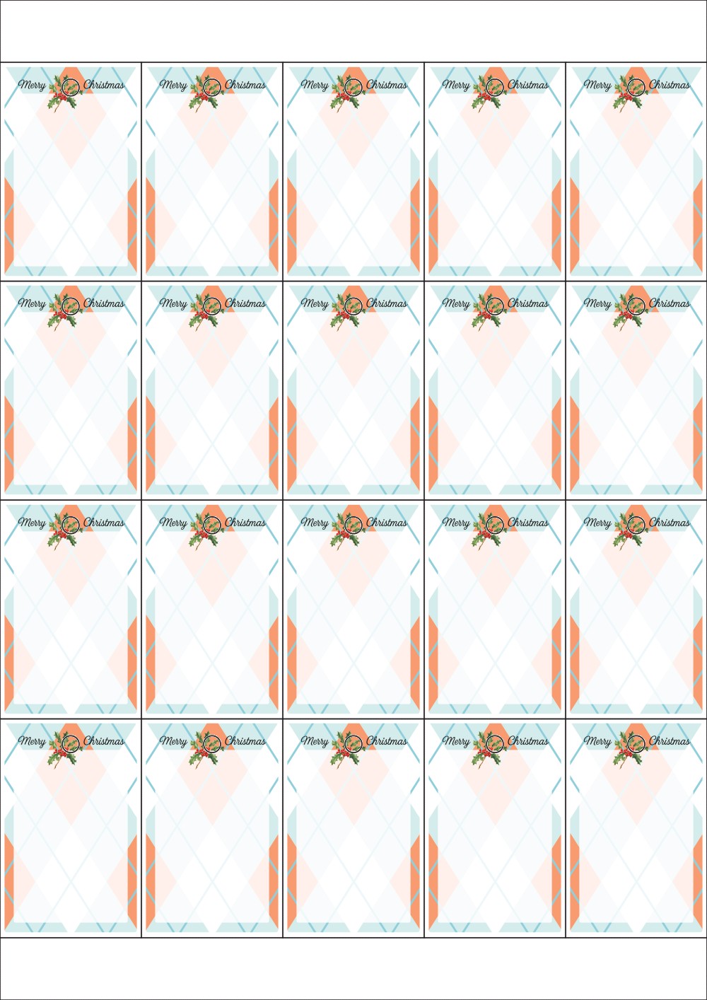 디자인된 A4 택 출력용 비점착 라벨, 규격코드: TLH0203, 디자인코드: DA1453(메리크리스마스 . 사랑의 메세지), 42 x 65 (mm)