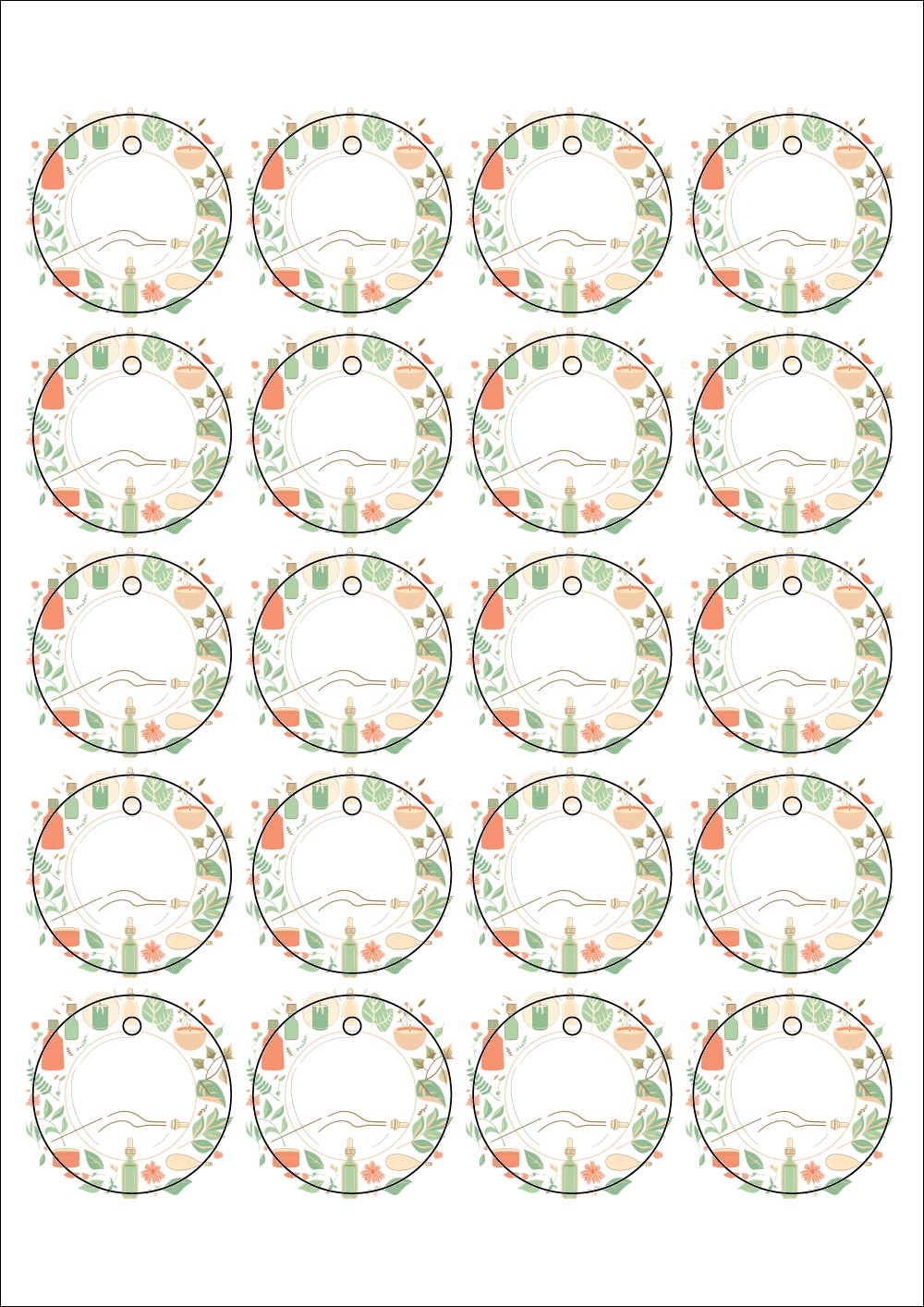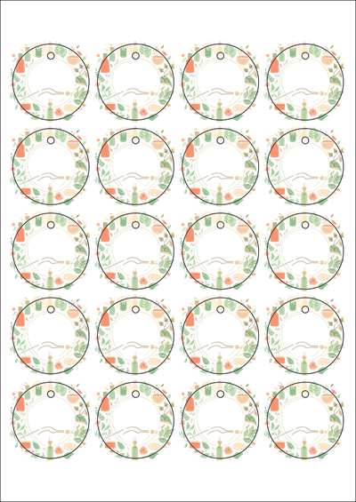 디자인된 A4 택 출력용 비점착 라벨, 규격코드: TLH0204, 디자인코드: DA1407(아로마 프레임), 45 x 45 (mm)