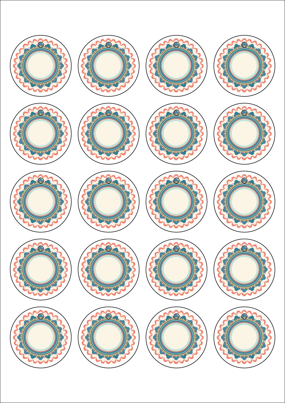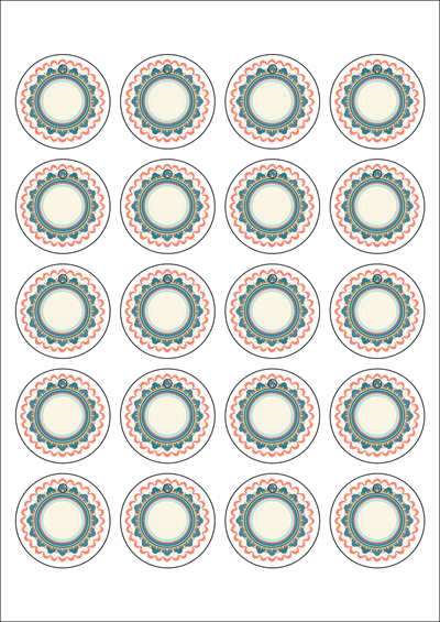 디자인된 A4 택 출력용 비점착 라벨, 규격코드: TLH0204, 디자인코드: DA1418(단청 받침), 45 x 45 (mm)