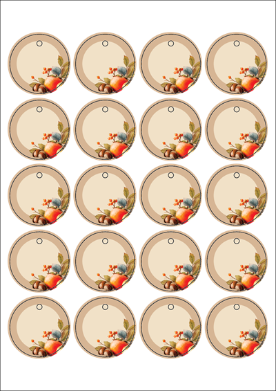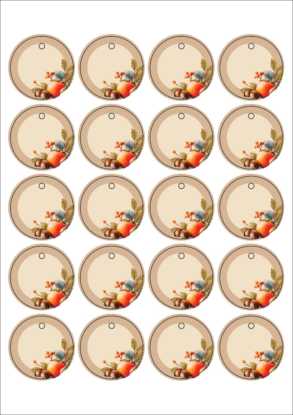 디자인된 A4 택 출력용 비점착 라벨, 규격코드: TLH0204, 디자인코드: DA1452(수확의 계절, 감사의 마음을 담아서), 45 x 45 (mm)