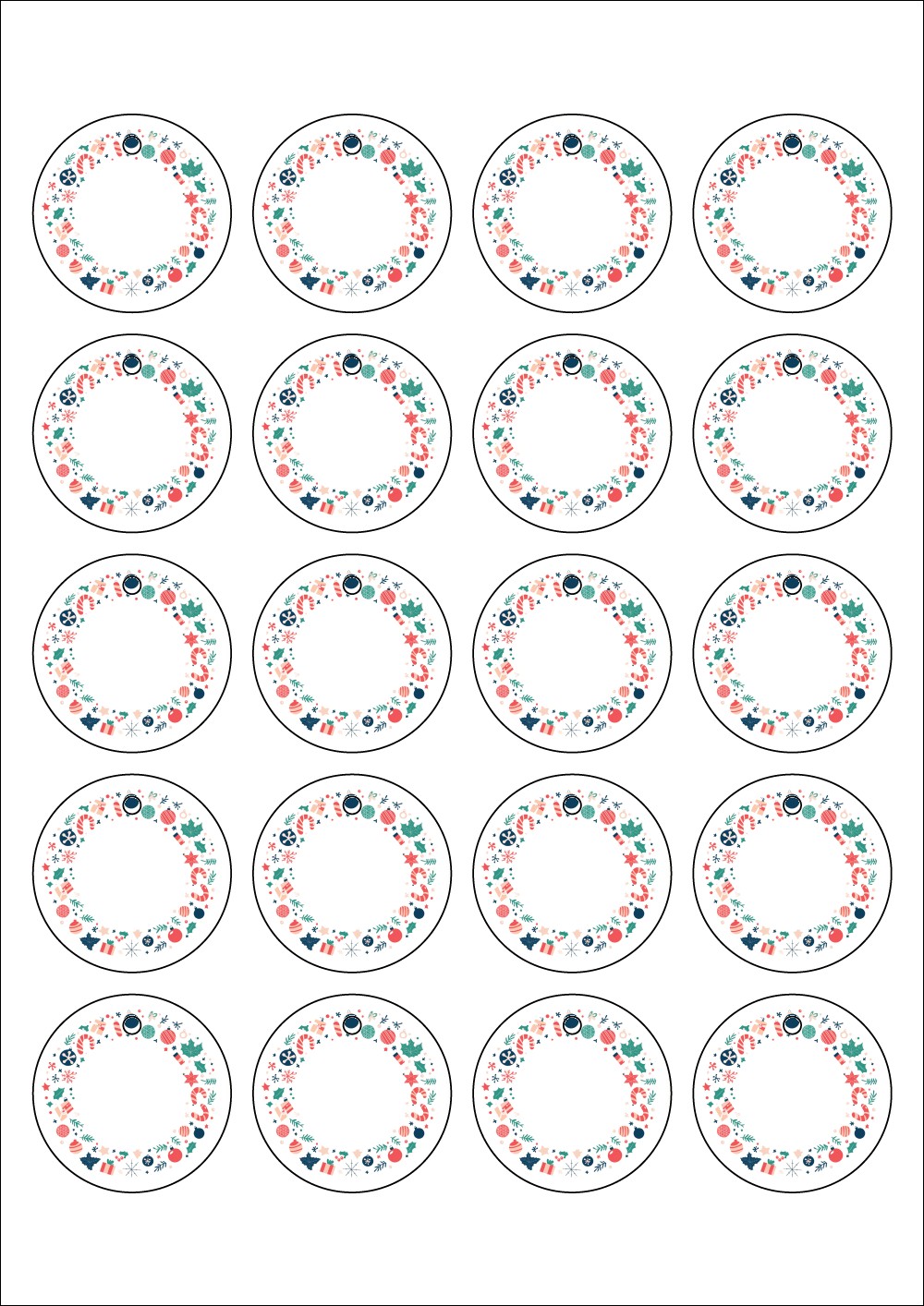 디자인된 A4 택 출력용 비점착 라벨, 규격코드: TLH0204, 디자인코드: DA1457(어서오세요. 크리스마스), 45 x 45 (mm)