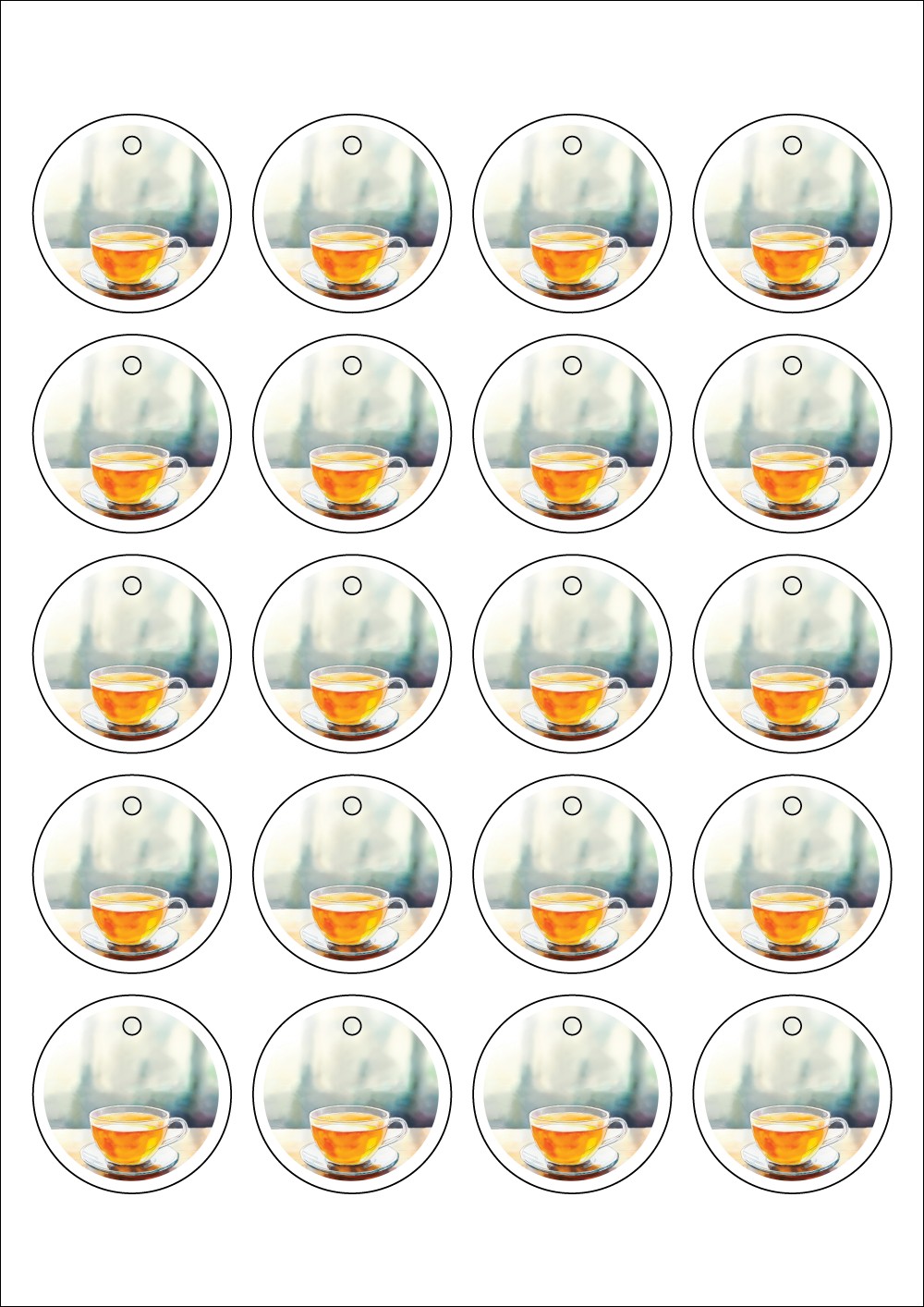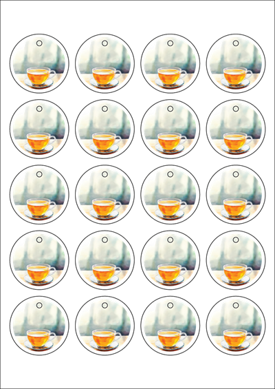 디자인된 A4 택 출력용 비점착 라벨, 규격코드: TLH0204, 디자인코드: DA1501(차 한잔이 그리운 따뜻한 오후), 45 x 45 (mm)