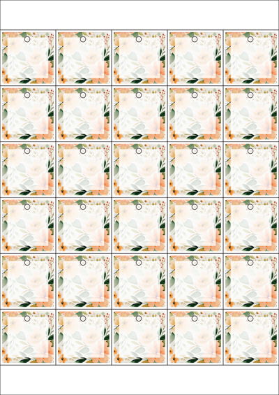 디자인된 A4 택 출력용 비점착 라벨, 규격코드: TLH0301, 디자인코드: DA1420(꽃무늬 포장지1), 42 x 42 (mm)