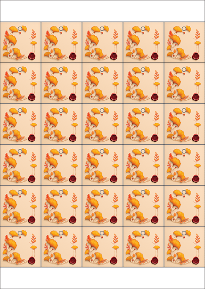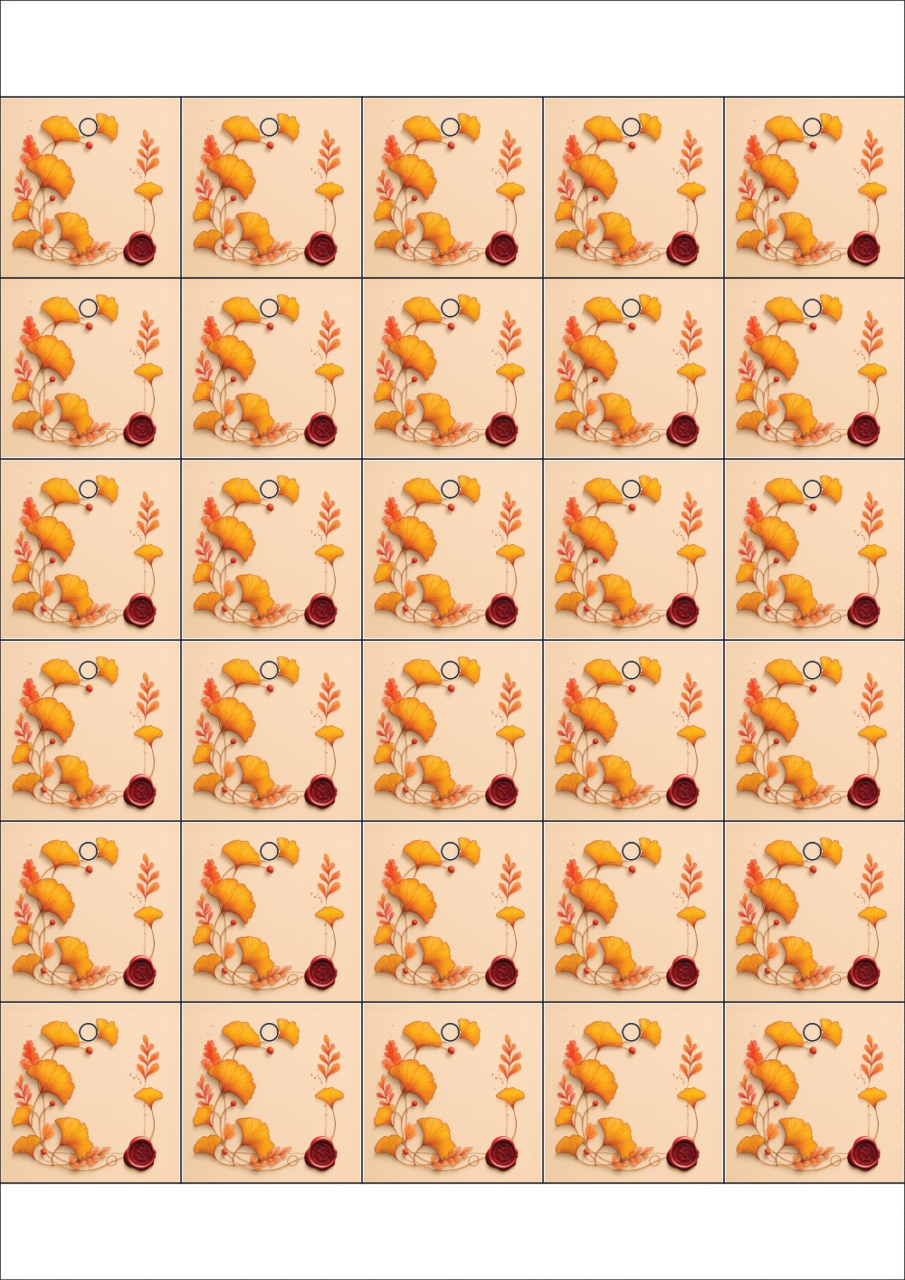 디자인된 A4 택 출력용 비점착 라벨, 규격코드: TLH0301, 디자인코드: DA1437(은행잎 메모), 42 x 42 (mm)