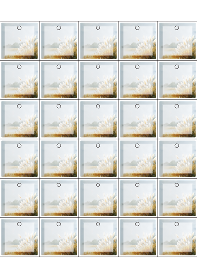 디자인된 A4 택 출력용 비점착 라벨, 규격코드: TLH0301, 디자인코드: DA1449(가을 여행 2), 42 x 42 (mm)