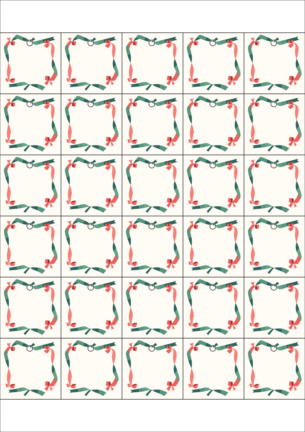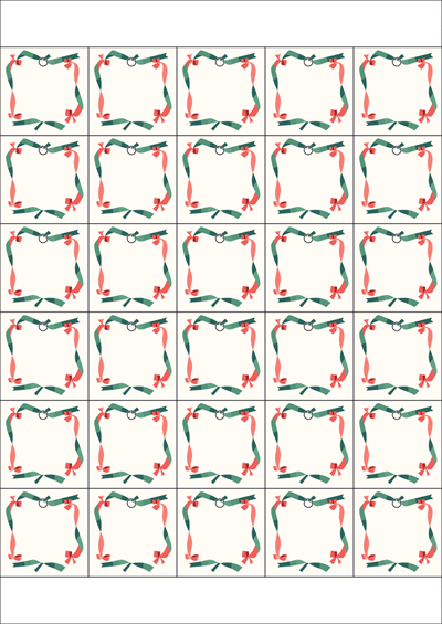 디자인된 A4 택 출력용 비점착 라벨, 규격코드: TLH0301, 디자인코드: DA1454(리본 프레임1), 42 x 42 (mm)