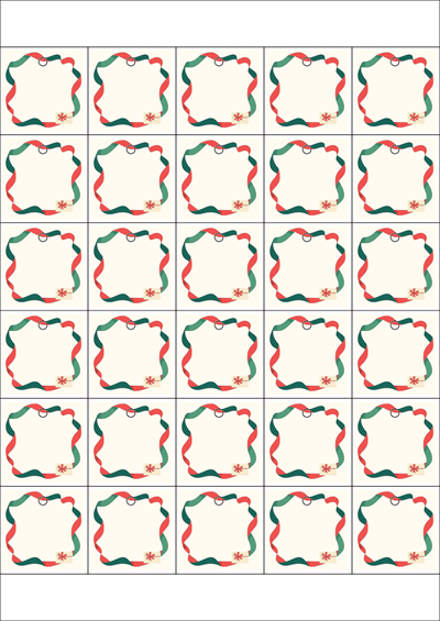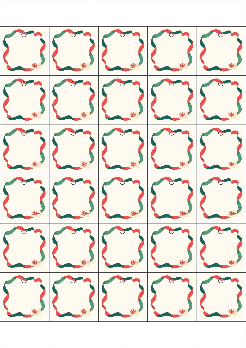 디자인된 A4 택 출력용 비점착 라벨, 규격코드: TLH0301, 디자인코드: DA1455(리본 프레임2), 42 x 42 (mm)
