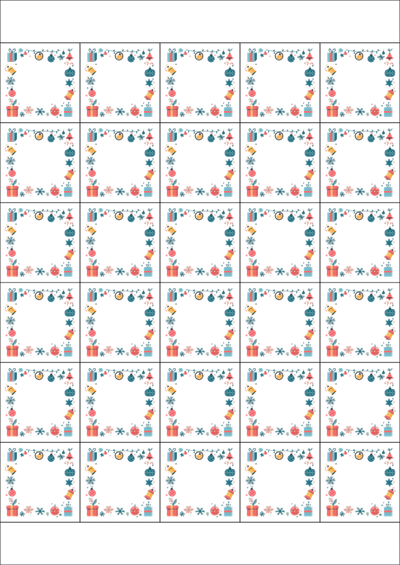 디자인된 A4 택 출력용 비점착 라벨, 규격코드: TLH0301, 디자인코드: DA1458(크리스마스를 장식해요), 42 x 42 (mm)