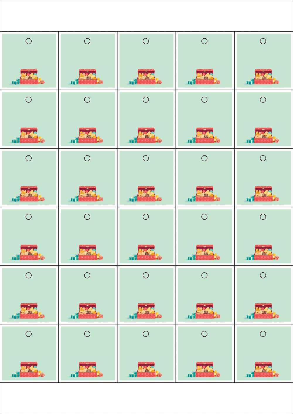 디자인된 A4 택 출력용 비점착 라벨, 규격코드: TLH0301, 디자인코드: DA1478(크리스마스 아침에 선물을 받다.), 42 x 42 (mm)