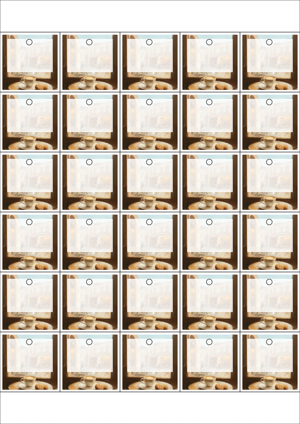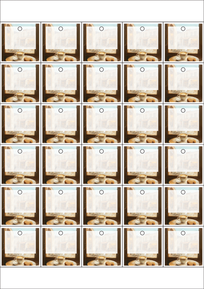 디자인된 A4 택 출력용 비점착 라벨, 규격코드: TLH0301, 디자인코드: DA1479(레트로 감성 카페에서), 42 x 42 (mm)