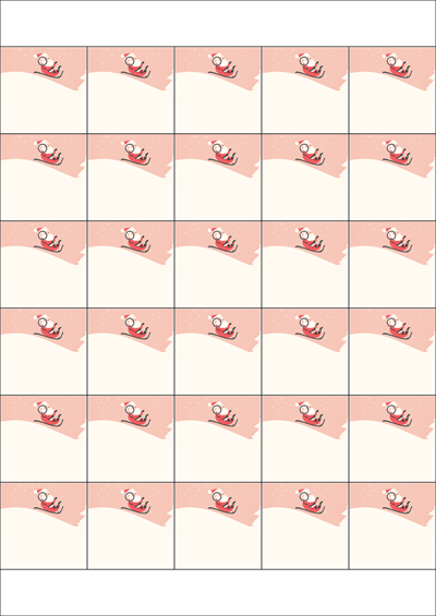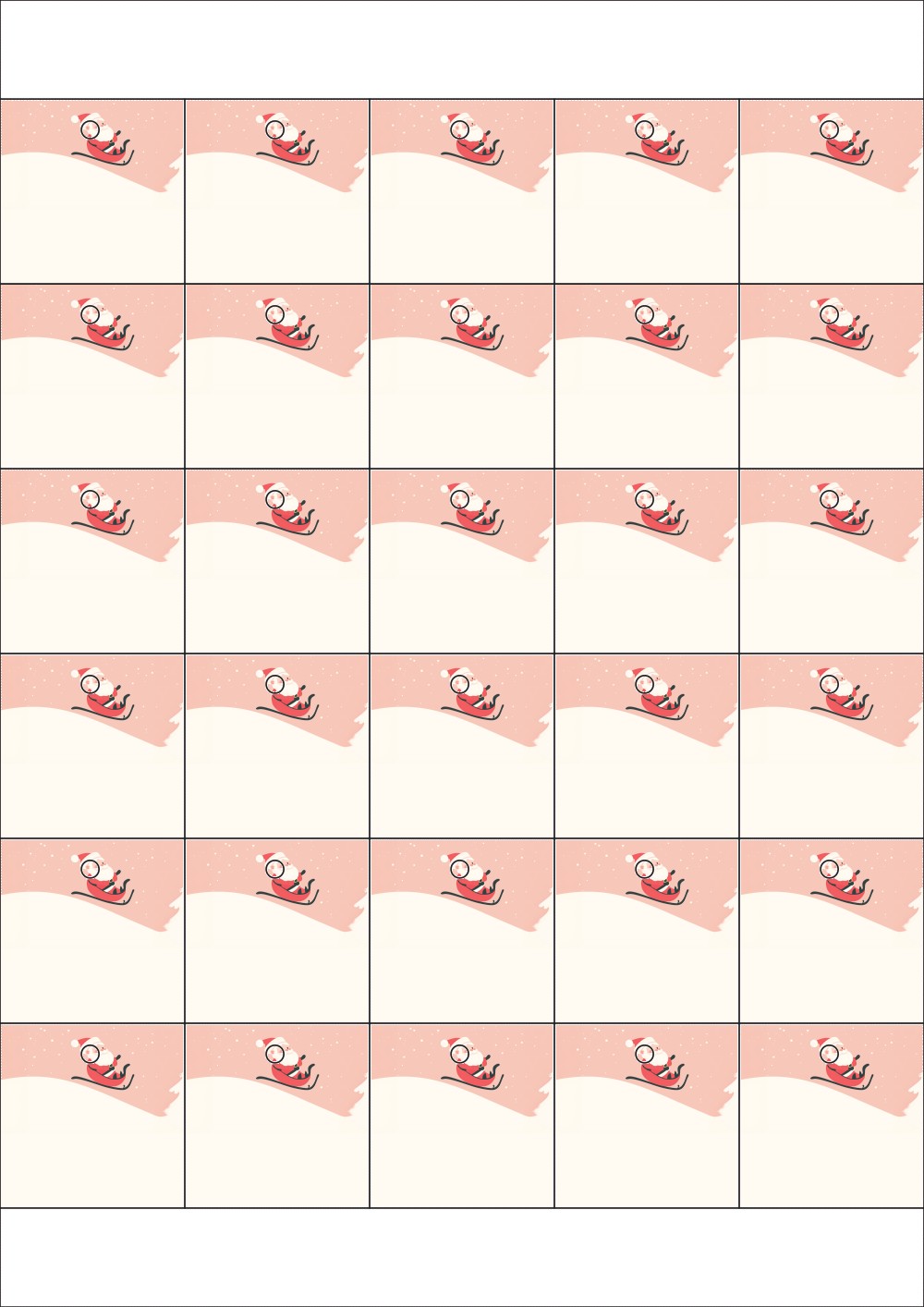 디자인된 A4 택 출력용 비점착 라벨, 규격코드: TLH0301, 디자인코드: DA1482(산타 신난다), 42 x 42 (mm)