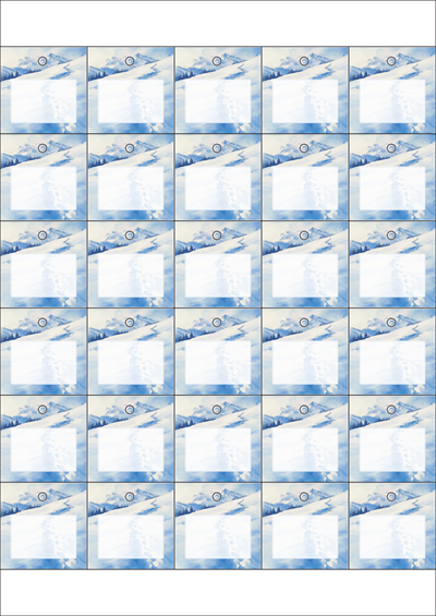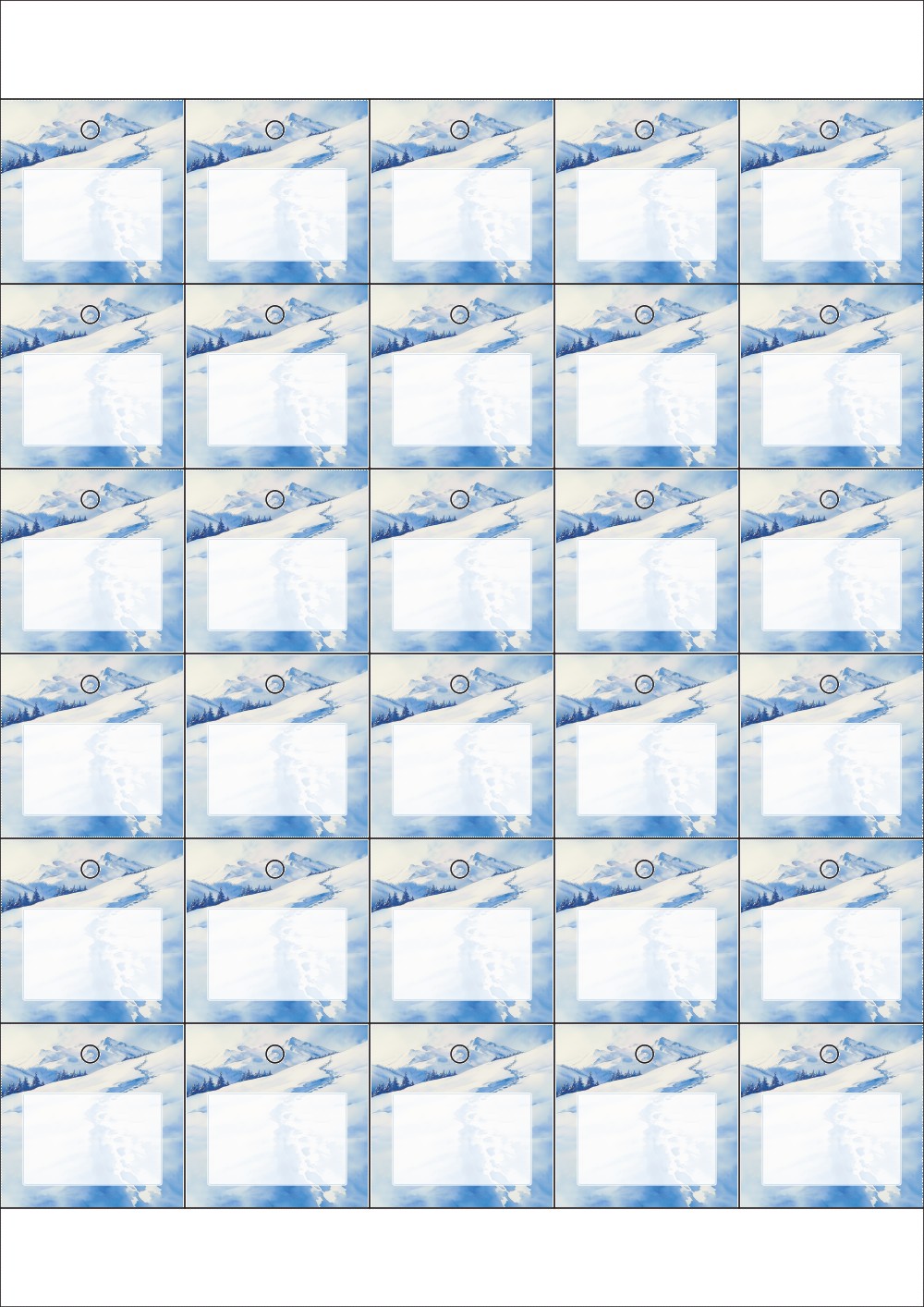 디자인된 A4 택 출력용 비점착 라벨, 규격코드: TLH0301, 디자인코드: DA1490(겨울산에서 보내는 편지 1), 42 x 42 (mm)