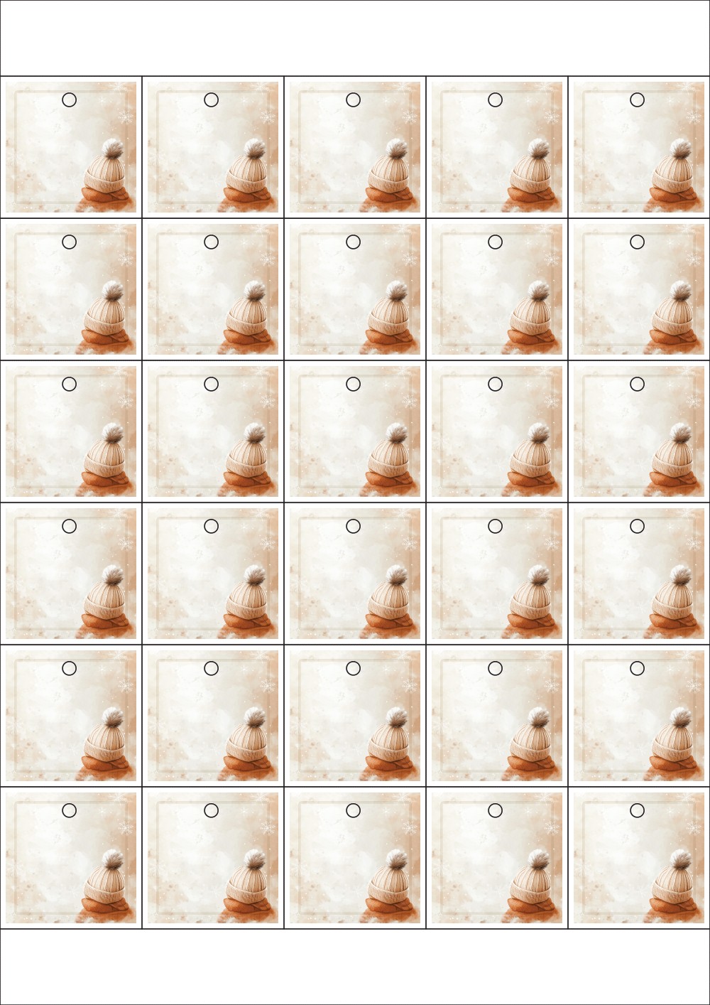 디자인된 A4 택 출력용 비점착 라벨, 규격코드: TLH0301, 디자인코드: DA1492(따뜻함이 그리운 계절), 42 x 42 (mm)