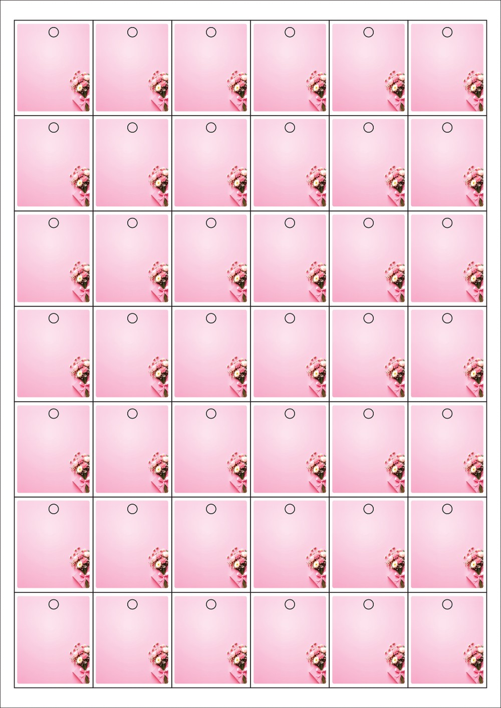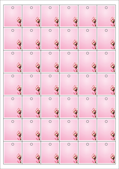 디자인된 A4 택 출력용 비점착 라벨, 규격코드: TLH0421, 디자인코드: DA1427(축하메세지. 핑크!), 33 x 40 (mm)