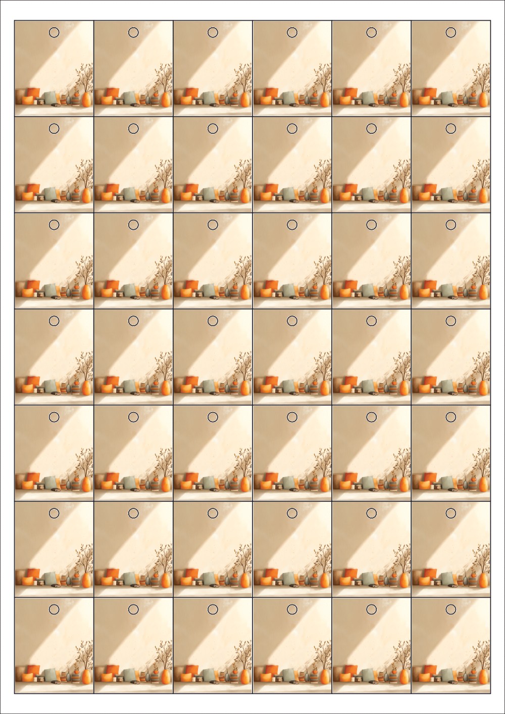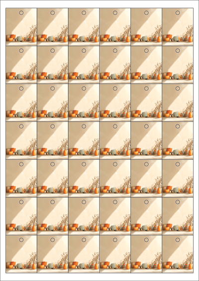 디자인된 A4 택 출력용 비점착 라벨, 규격코드: TLH0421, 디자인코드: DA1435(평온한 가을날의 하루), 33 x 40 (mm)