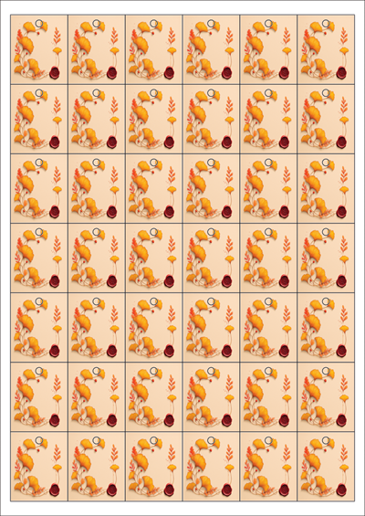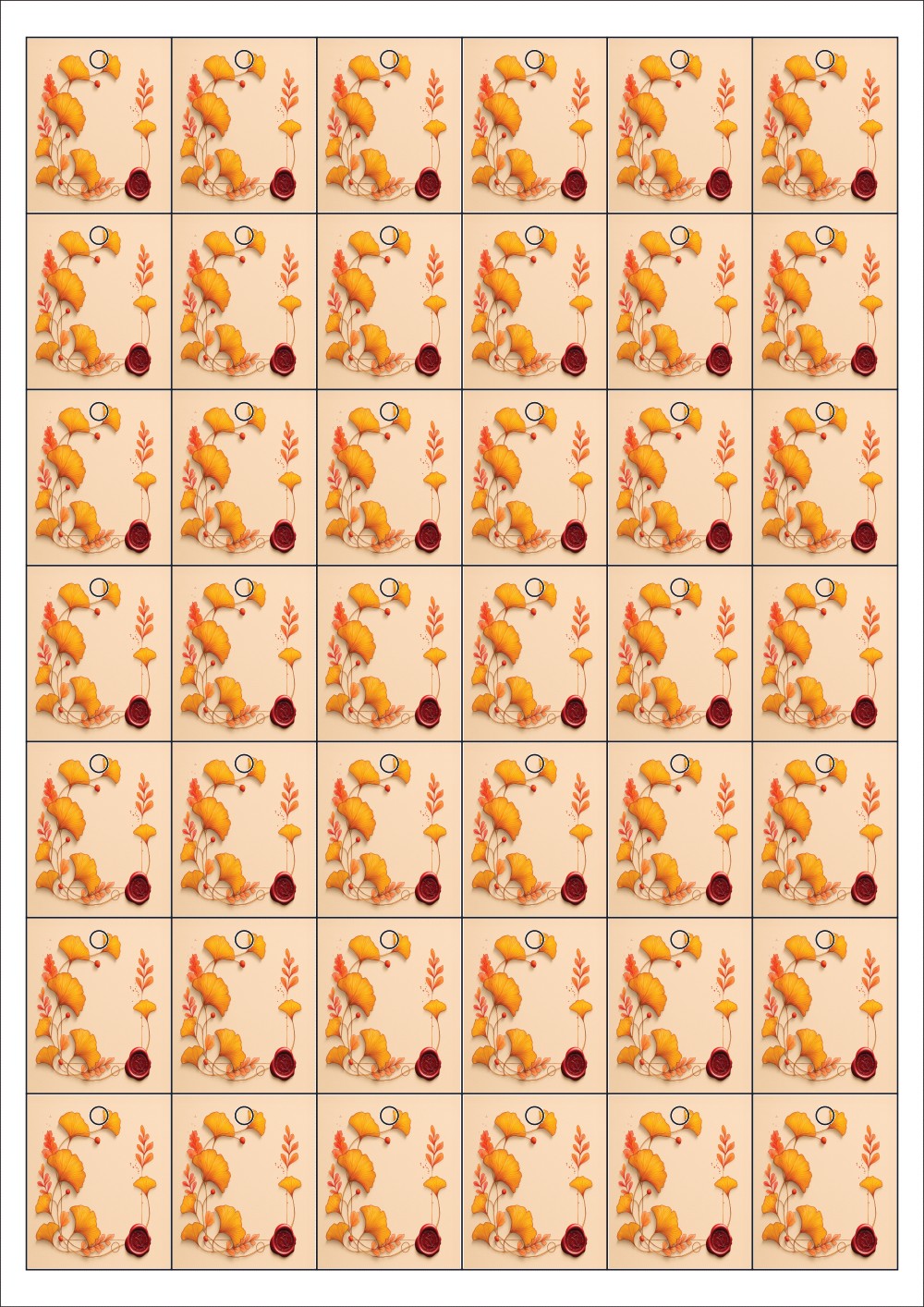 디자인된 A4 택 출력용 비점착 라벨, 규격코드: TLH0421, 디자인코드: DA1437(은행잎 메모), 33 x 40 (mm)