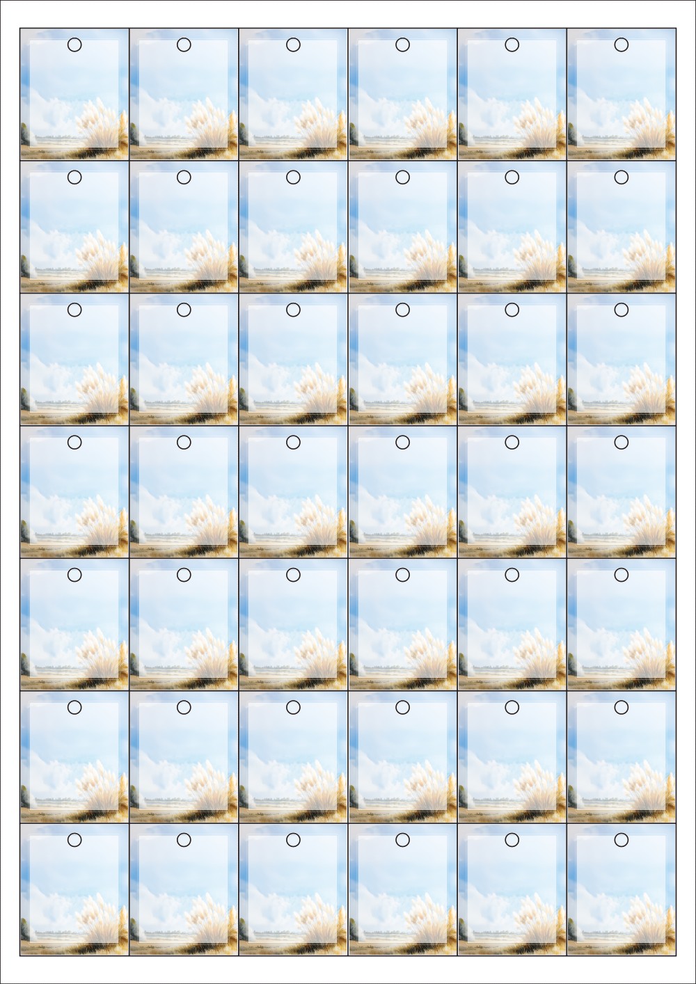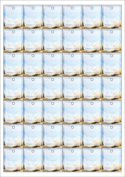 디자인된 A4 택 출력용 비점착 라벨, 규격코드: TLH0421, 디자인코드: DA1448(가을 여행 1), 33 x 40 (mm)