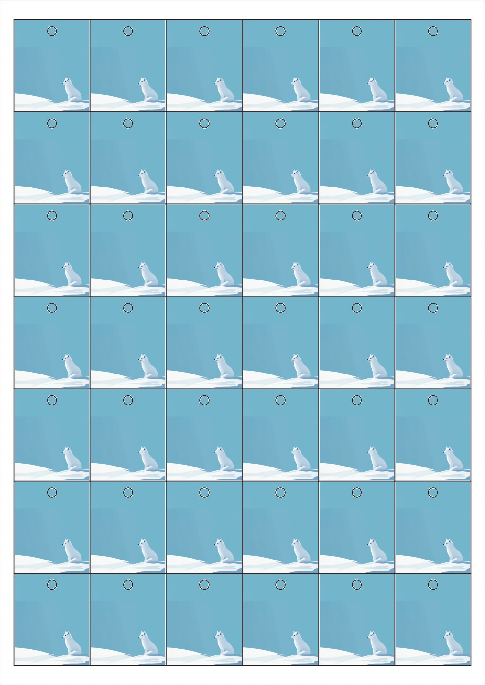 디자인된 A4 택 출력용 비점착 라벨, 규격코드: TLH0421, 디자인코드: DA1474(여우 길들이기), 33 x 40 (mm)