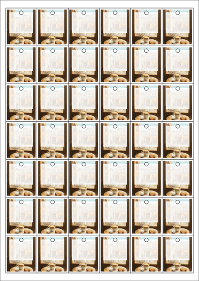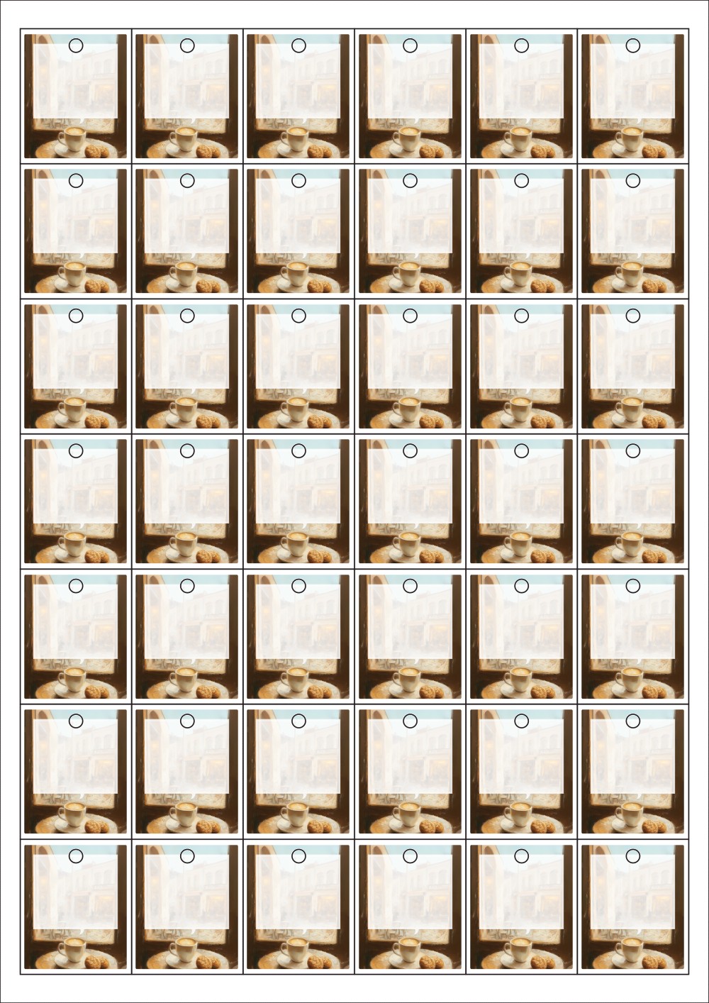 디자인된 A4 택 출력용 비점착 라벨, 규격코드: TLH0421, 디자인코드: DA1479(레트로 감성 카페에서), 33 x 40 (mm)