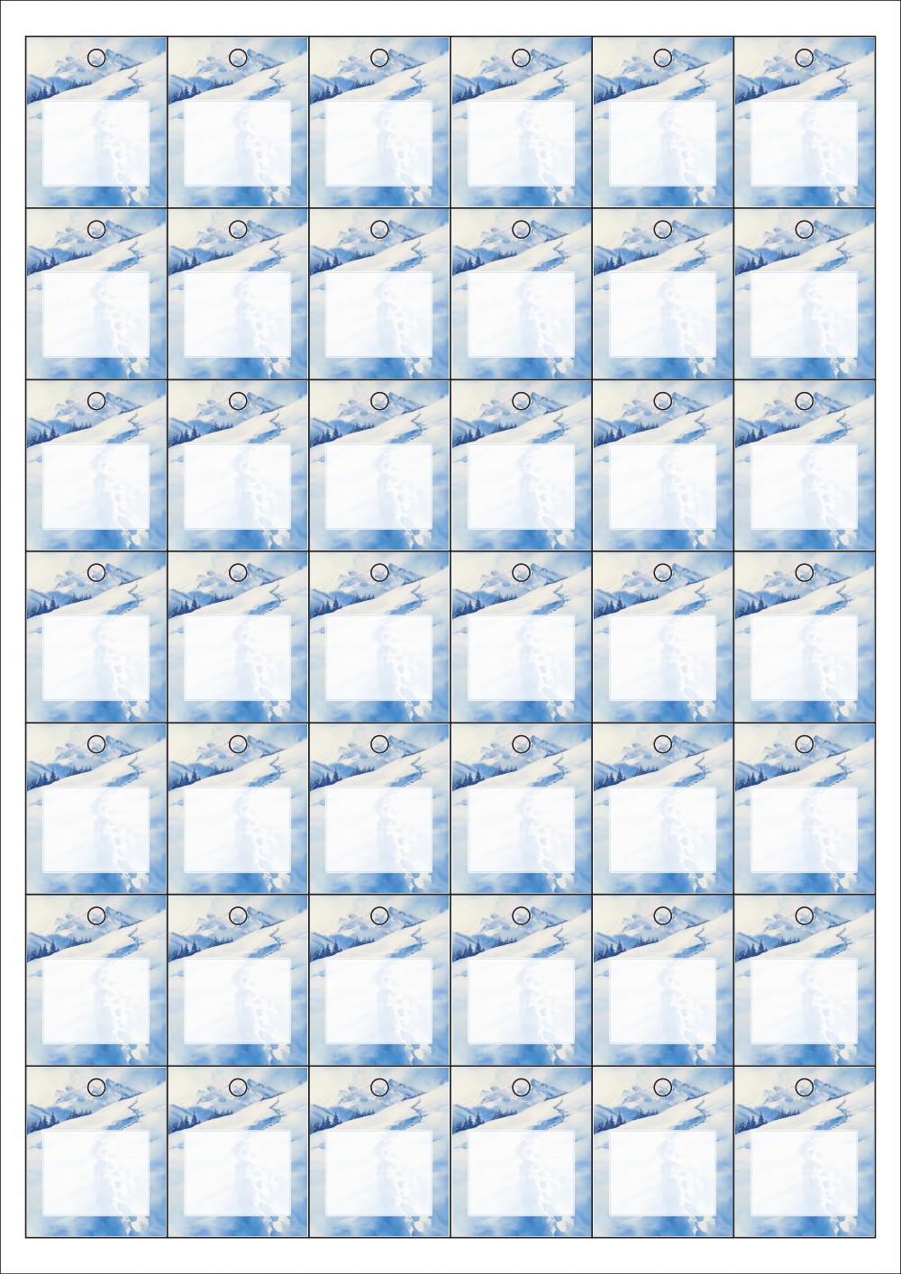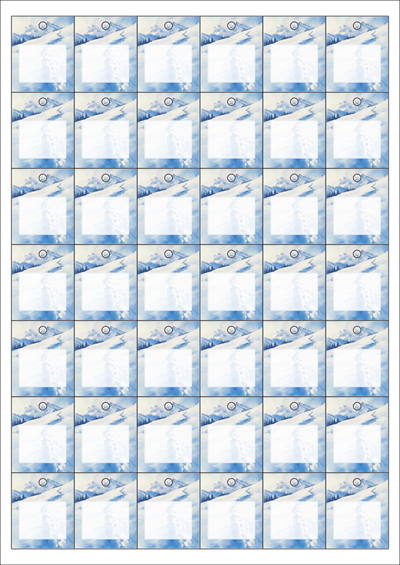 디자인된 A4 택 출력용 비점착 라벨, 규격코드: TLH0421, 디자인코드: DA1490(겨울산에서 보내는 편지 1), 33 x 40 (mm)