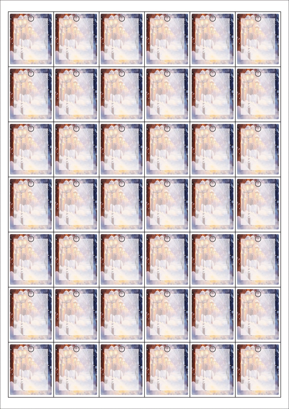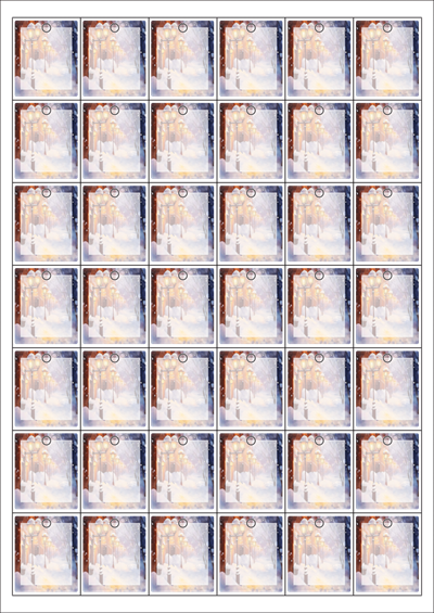 디자인된 A4 택 출력용 비점착 라벨, 규격코드: TLH0421, 디자인코드: DA1497(겨울밤의 세레나데), 33 x 40 (mm)