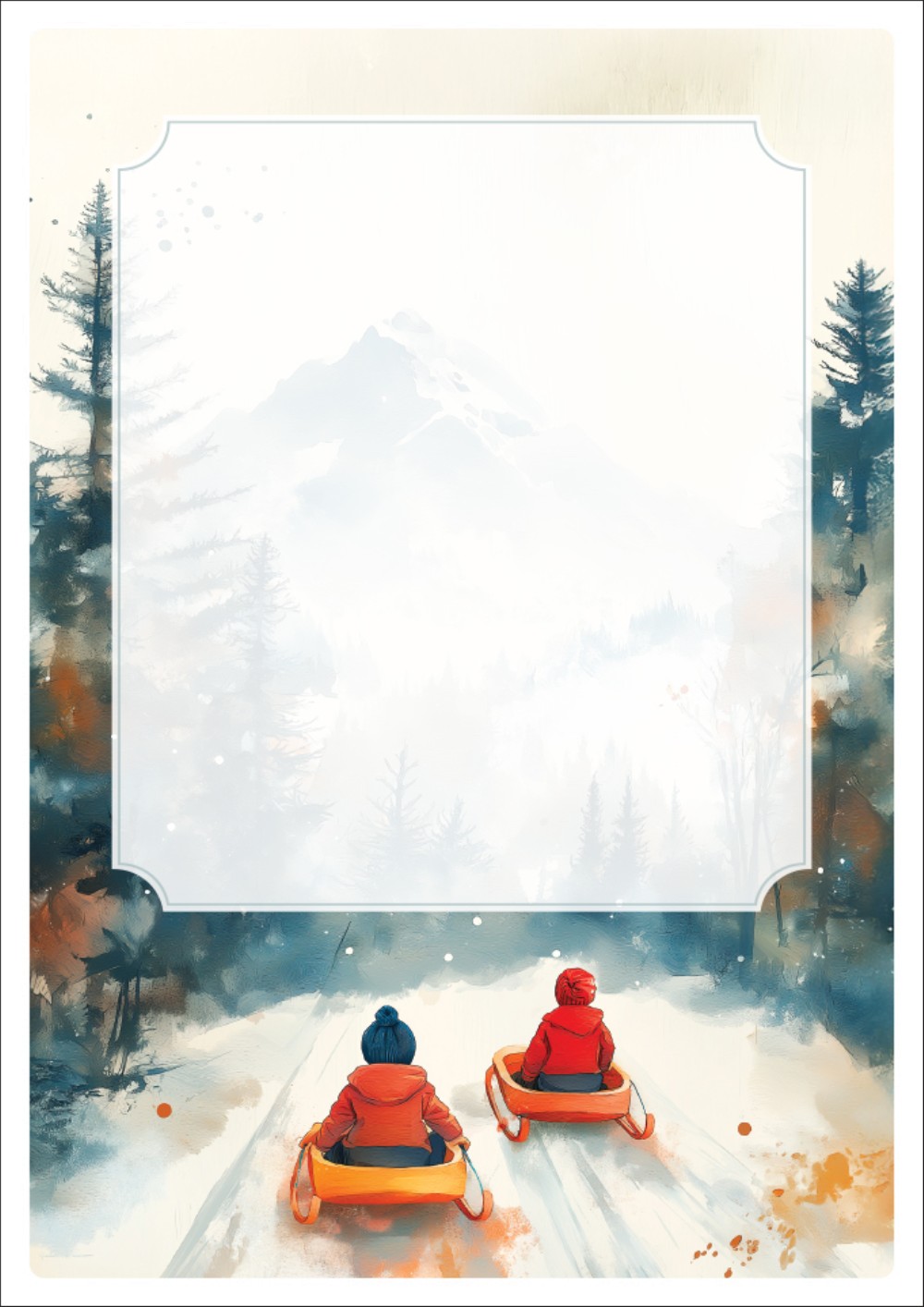 디자인된 A4 택 출력용 비점착 라벨, 규격코드: TLS0011, 디자인코드: DA1495(겨울날의 동화, 그리고 즐거운 추억), 210 x 297 (mm)