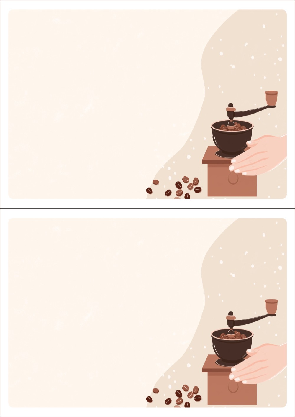디자인된 A4 택 출력용 비점착 라벨, 규격코드: TLS0021, 디자인코드: DA1412(감사의 커피한잔), 210 x 148.5 (mm)