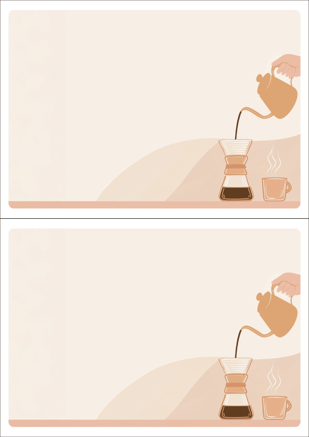 디자인된 A4 택 출력용 비점착 라벨, 규격코드: TLS0021, 디자인코드: DA1413(커피와 함께 힐링타임), 210 x 148.5 (mm)